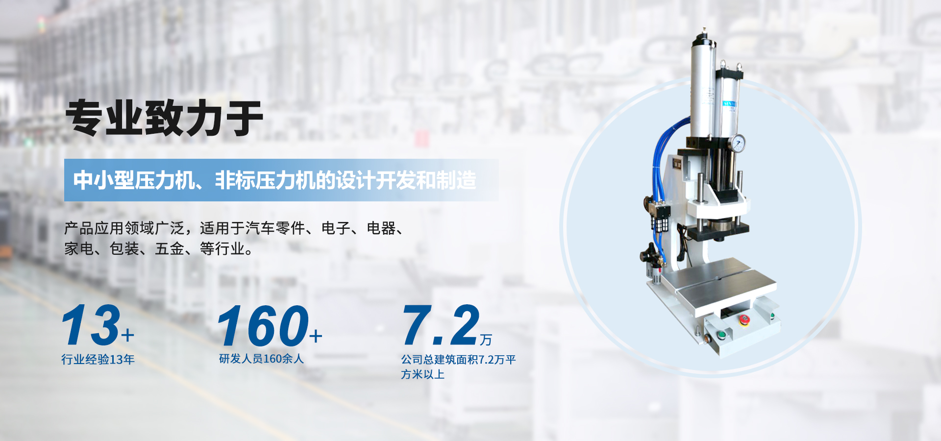 煙臺壟鑫沖壓設(shè)備有限公司是集經(jīng)營、生產(chǎn)、技術(shù)開發(fā)為一體的經(jīng)濟實體,專業(yè)致力于中小型壓力機、非標壓力機的設(shè)計開發(fā)和制造。在引進德國、日本等國家先進的鉚壓控制技術(shù)及機器設(shè)計理念的基礎(chǔ)上,結(jié)合相關(guān)行業(yè)的實際需要,開發(fā)出各種臺式、落地式氣動壓力機、手動壓力機、氣液增壓機、氣液增力缸、旋鉚機、無鉚釘鉚接機等鉚接設(shè)備。產(chǎn)品應(yīng)用領(lǐng)域廣泛,適用于汽車零件、電子、電器、家電、包裝、五金、等行業(yè)。公司視質(zhì)量為生命,并一貫遵循對每一臺產(chǎn)品負責(zé),對每一位用戶負責(zé),真誠為您服務(wù)。 自公司成立以來,秉承“誠信,創(chuàng)新,專業(yè)”的經(jīng)營理念,以優(yōu)質(zhì)的產(chǎn)品,完善的售后服務(wù),樹立良好的品牌形象,服務(wù)于廣大新老顧客。我們竭誠于各位同仁攜手并進,共謀發(fā)展。